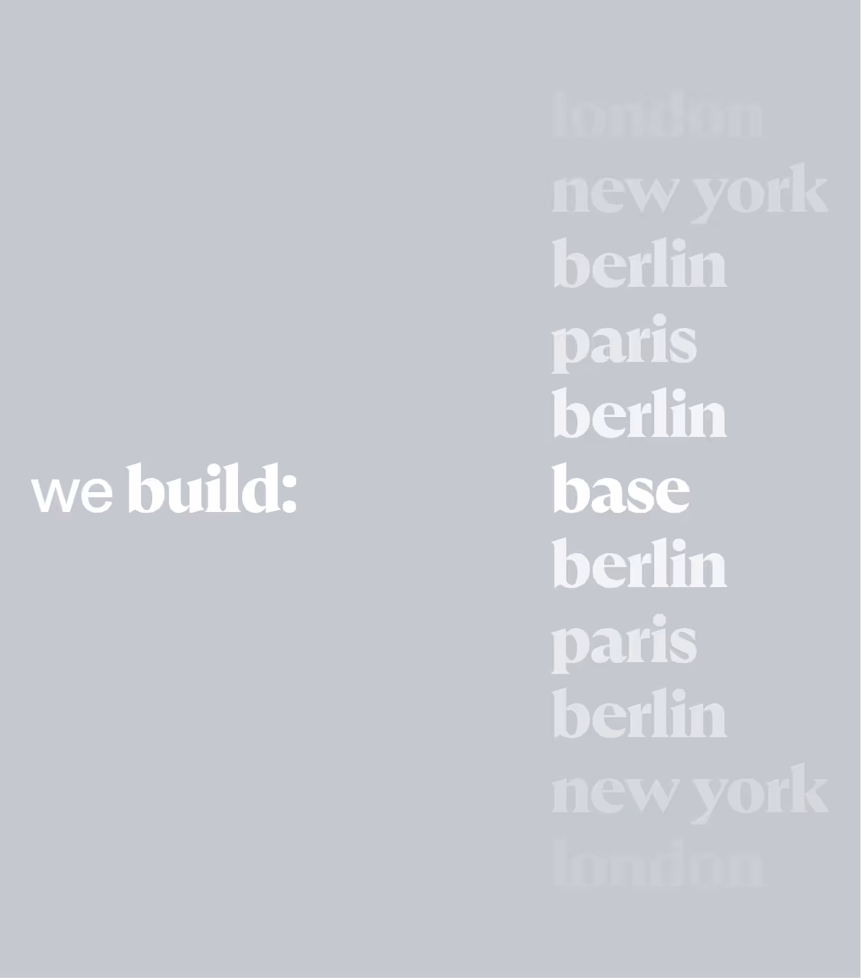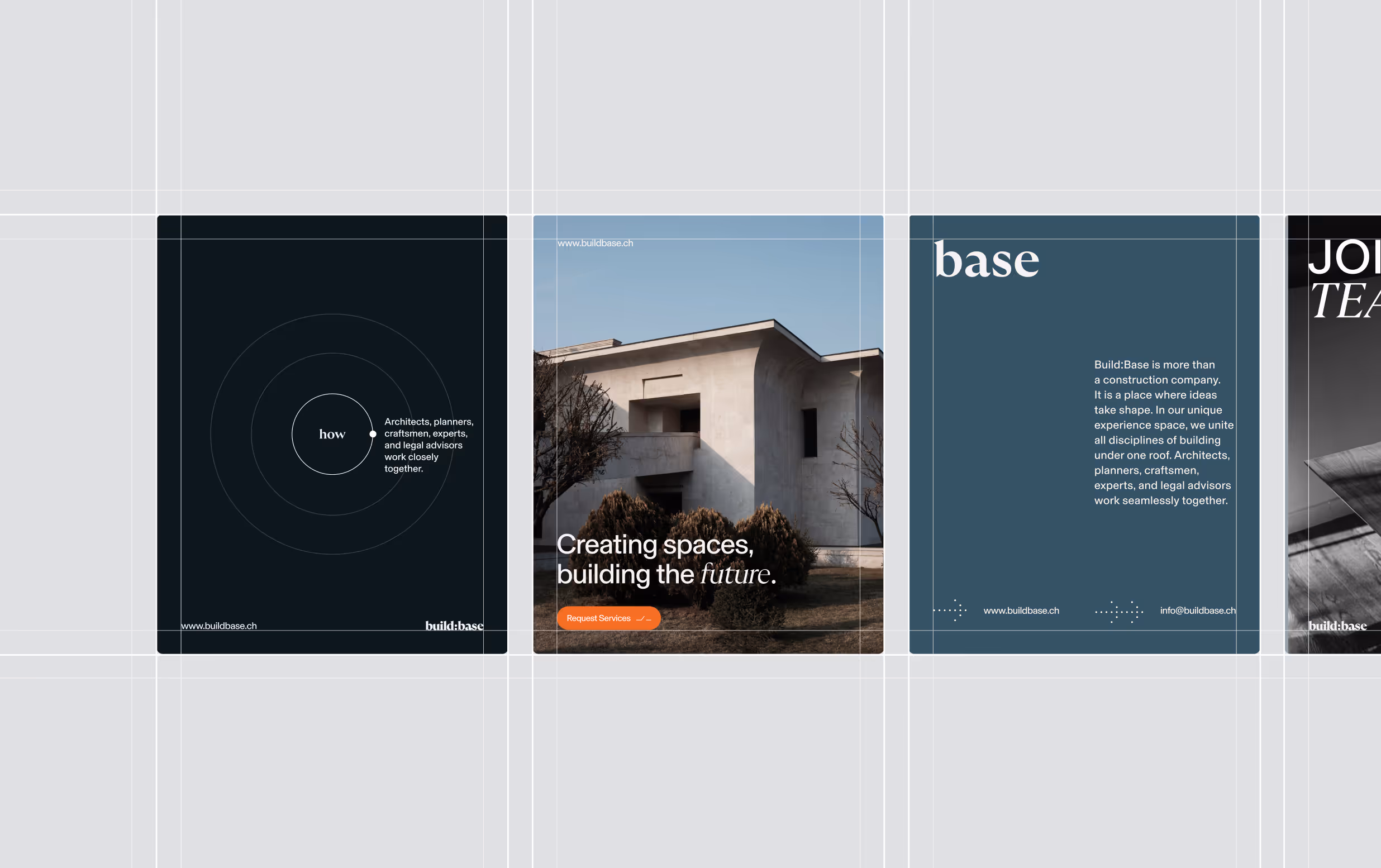 build:base reimagines modular architecture by uniting every discipline in a single, integrated space in Basel. We created the strategic and visual foundation for the brand, developing a design system that brings together identity, investor messaging, and communication. At its core, the brand expresses openness, adaptability, and an architecturally driven way of thinking.